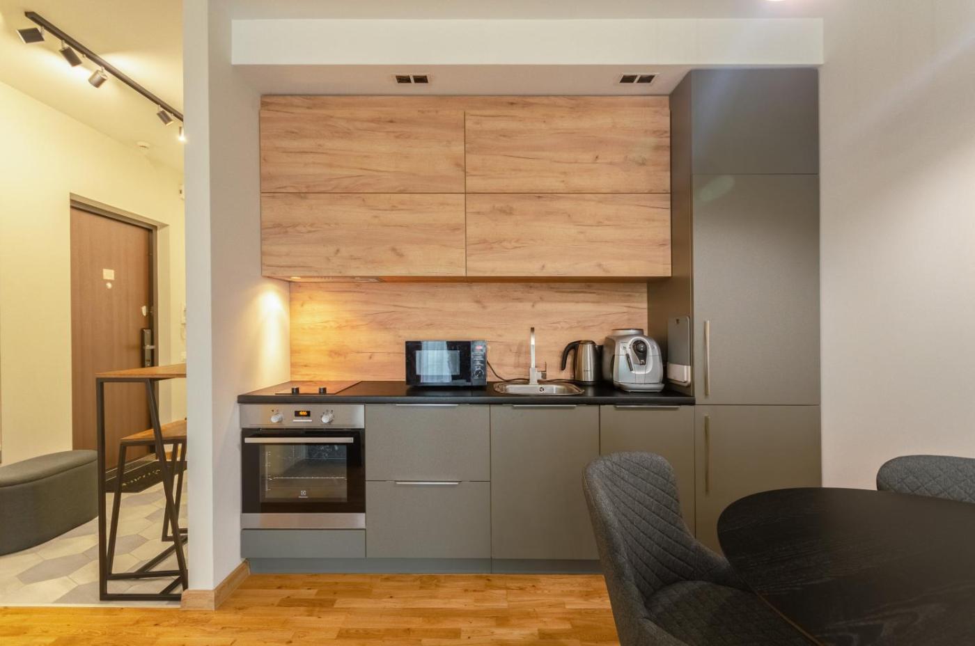 One-Bedroom Apartment. This apartment consists of 1 living room, 1 separate bedroom and 1 bathroom with a bath and free toiletries. Guests can make meals in the kitchen that is equipped with a stovetop, a refrigerator, a dishwasher and kitchenware. The air-conditioned apartment provides a flat-screen TV, a washing machine, a seating area, a dining area as well as city views. The unit offers 2 beds. ;